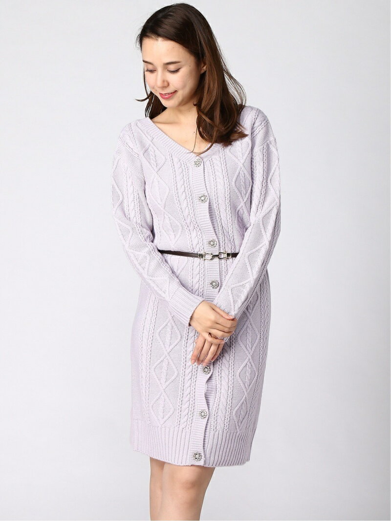 Debut de Fiore(デビュードフィオレ)2WayケーブルニットOPエレガントなウエストベルトつきのケーブルニットワンピース。