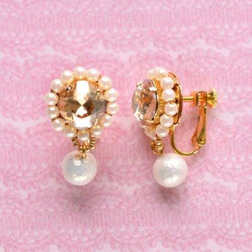 大粒スワロフスキー・エレメントを中心に配置した、ゴージャスなイヤリングです。