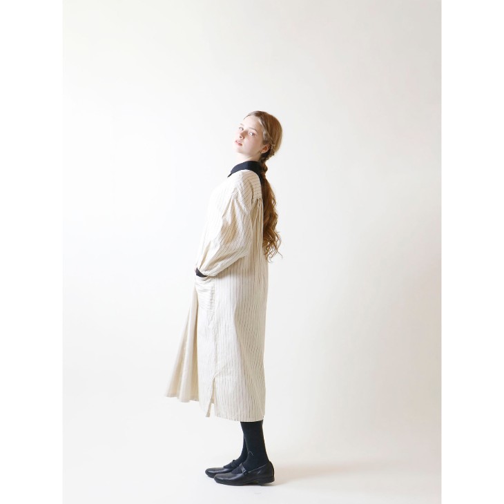MAGALI オックスコットン・ピンストライプ・ワンピース (ivory) | ワンピース 大ゆったりしたサイズ感と、裾にかけてやや広がりのあるシルエット。
