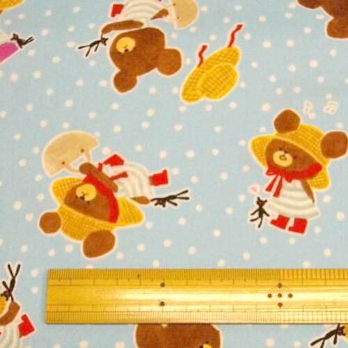 【手芸】くまのがっこう5026C サックス☆110cm巾オックス生地 ルルロロ【入園・入学】【キャラクター生地】(数量1で10cm)】