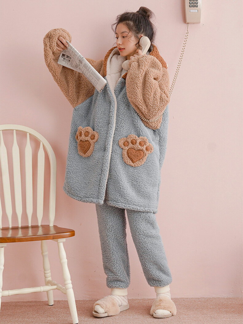 OPENセール パジャマ レディース かわいい 冬 パジャマ 前開き 上下セット ルームウェア フリースパジャマ くま 熊 クマ耳 肉球 部屋着 大人用 女の子 寝間着 部屋着 可愛い かわいい もこもこ ふわもこ あったか 旅行 プレゼント ギフト誕生日 クリスマス